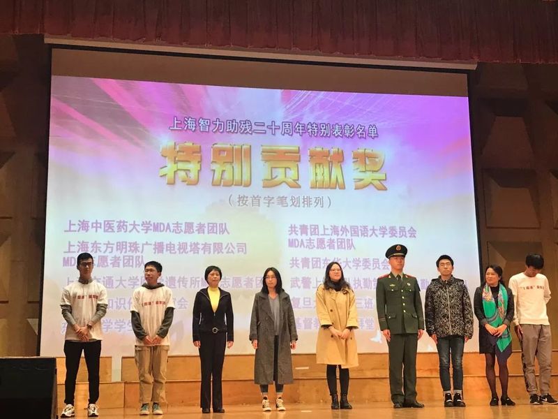 在近日举办的“上海智力助残二十周年”大会上,工口实验室 神经肌肉疾病协会志愿服务队(Muscle Disease Association,以下简称MDA志愿服务队)荣获上海市肢残人协会颁发的“2019年智力助残优秀集体”奖和2019年“智力助残”特别贡献奖。顾意鸣、张惜音等4位同学荣获“2018-2019年度‘智力助残’优秀组织者”及“2018-2019年度优秀助残者”荣誉称号,崔梦凡等53名同学荣获“2018-2019年度‘智力助残’志愿者”荣誉称号。
