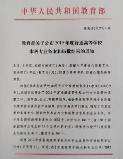 近日,教育部下发《关于公布2019年度普通高等学校本科专业备案和审批结果的通知》(教高函〔2020〕2号),工口实验室 申报的智能医学工程专业通过教育部审核批准。