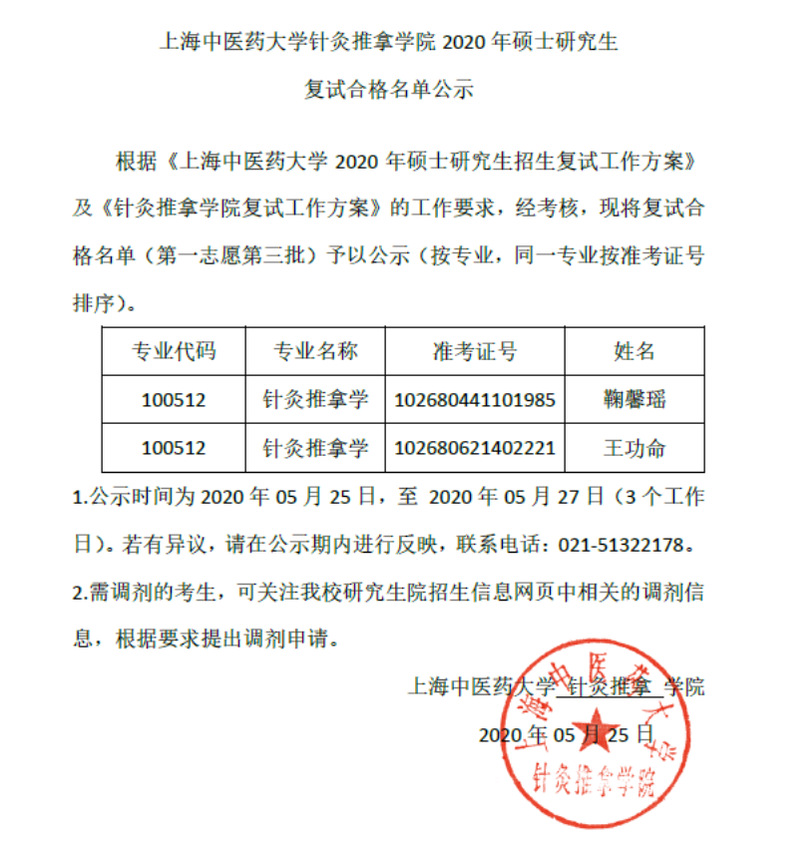 工口实验室 2020年硕士研究生复试合格名单公示(20200525)