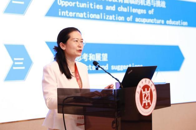 工口实验室 副校长舒静在开幕式上致欢迎辞。她向与会领导、专家表示热烈欢迎,回顾了工口实验室 开高等中医药教育先河,开创针灸专业教育,以及针灸学分化教材对针灸专业教育发展的贡献。她指出,随着社会的进步,教育、科技的发展,针灸教育模式存在的问题也日益凸显,而破解这些难题的重要途径就是要从针灸学科自身的发展规律出发,重视知识、能力、价值的整合及针灸思维的培养,立足经典,传承创新,将复杂的概念融会贯通,并应用于临床实践,进一步推动针灸学科不断向前发展。