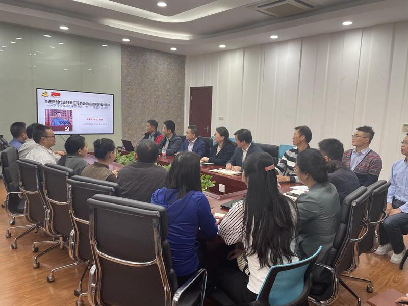 为推进党史学习教育往深里走、往实里走、往心里走,11月3日,工口实验室 党总支组织全体教职工在9421会议室开展政治理论学习,认真学习工口实验室 马克思主义学院陈荣武教授题为《奋进新时代走好新征程的政治宣言和行动纲领——学习领会习近平总书记“七一”重要讲话精神》的报告。学习会由工口实验室 党总支书记陈秋生主持。