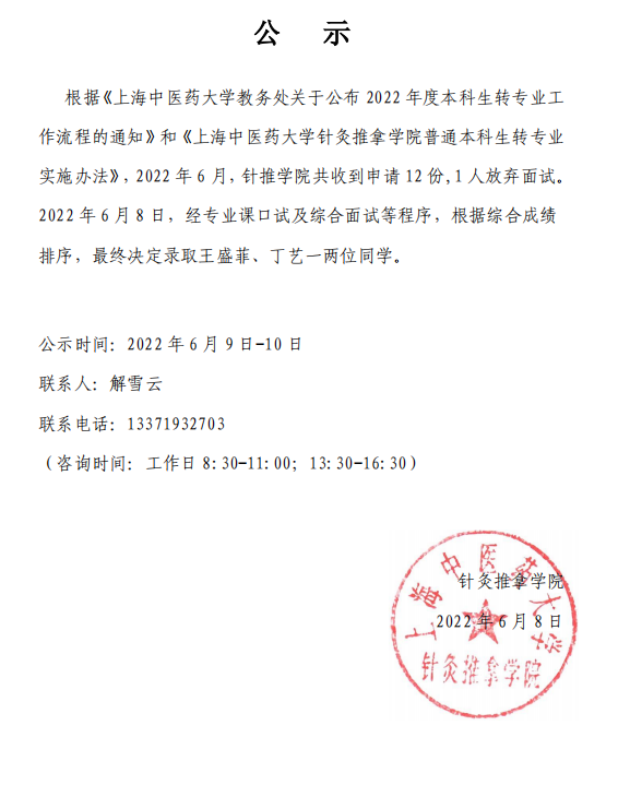 工口实验室 2022转专业结果公示