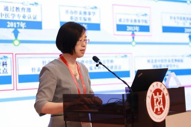 工口实验室 副校长舒静在开幕式上致欢迎辞。她向与会领导、专家表示热烈欢迎,回顾了工口实验室 开高等中医药教育先河,开创针灸专业教育,以及针灸学分化教材对针灸专业教育发展的贡献。她指出,随着社会的进步,教育、科技的发展,针灸教育模式存在的问题也日益凸显,而破解这些难题的重要途径就是要从针灸学科自身的发展规律出发,重视知识、能力、价值的整合及针灸思维的培养,立足经典,传承创新,将复杂的概念融会贯通,并应用于临床实践,进一步推动针灸学科不断向前发展。